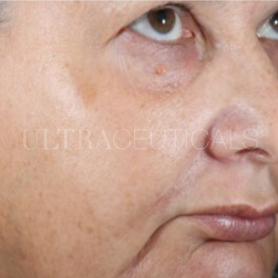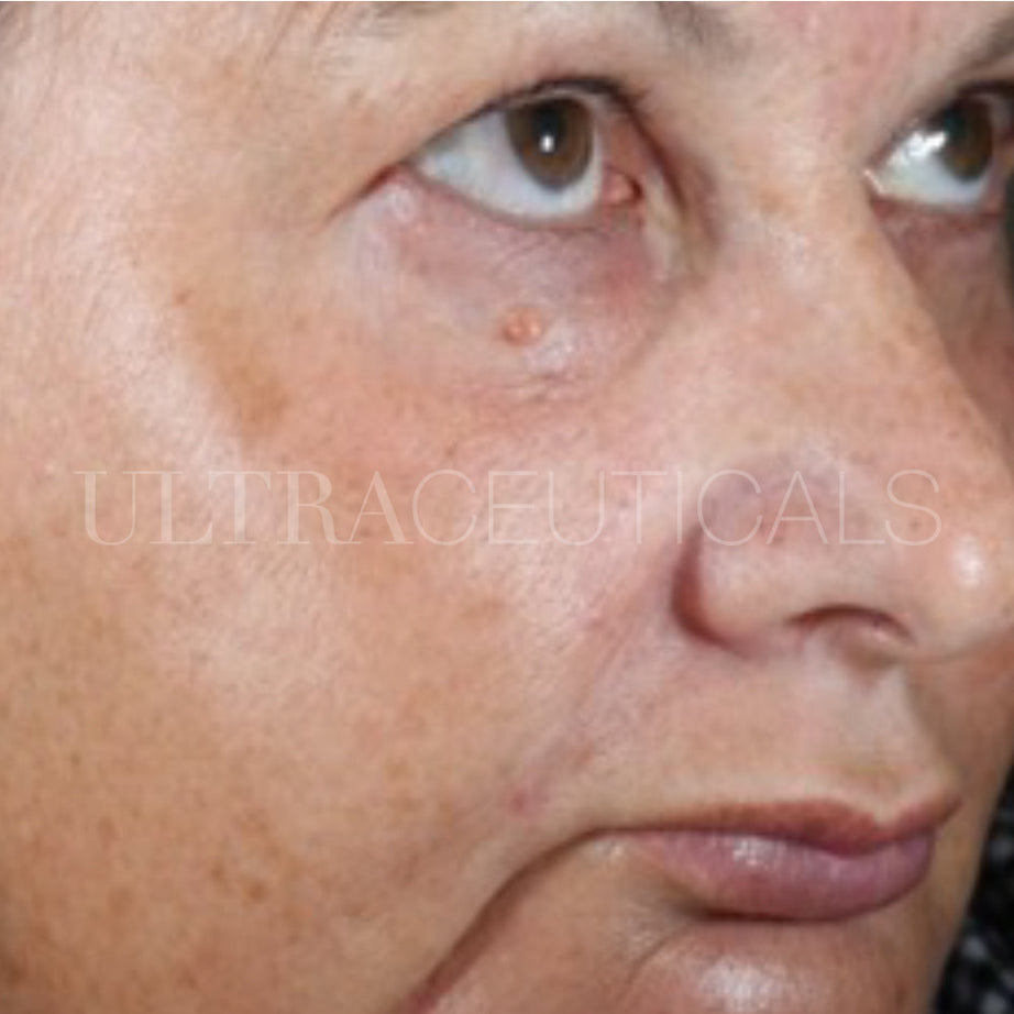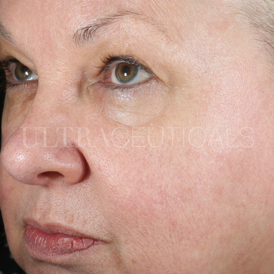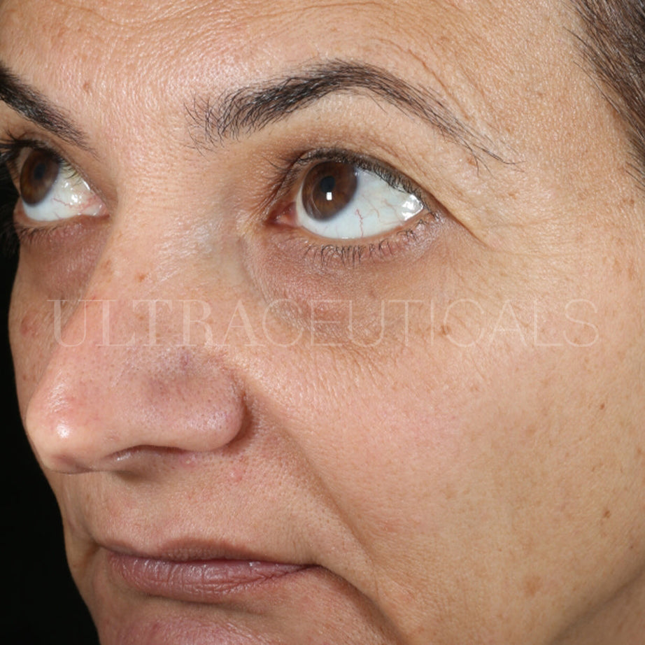Results: Wrinkles and fine lines around the eyes appeared less visible. Notable improvements in skin’s clarity and decrease of brown spots are evident. Texture of skin appears smoother.
