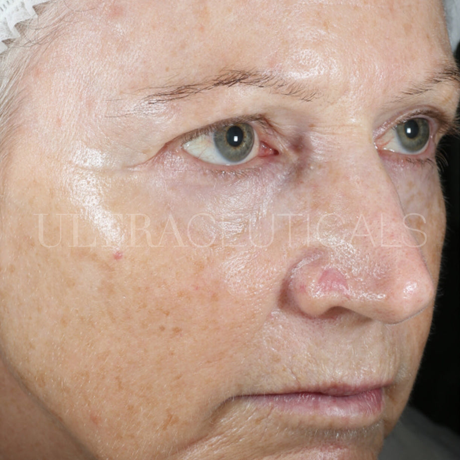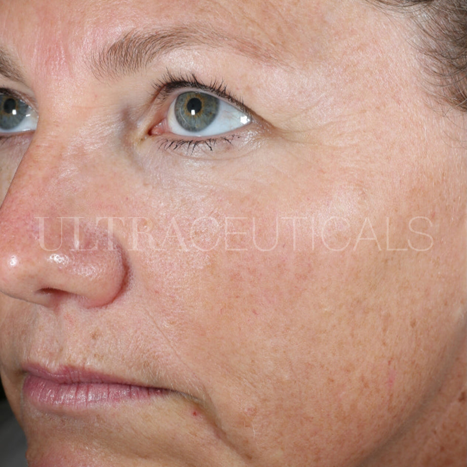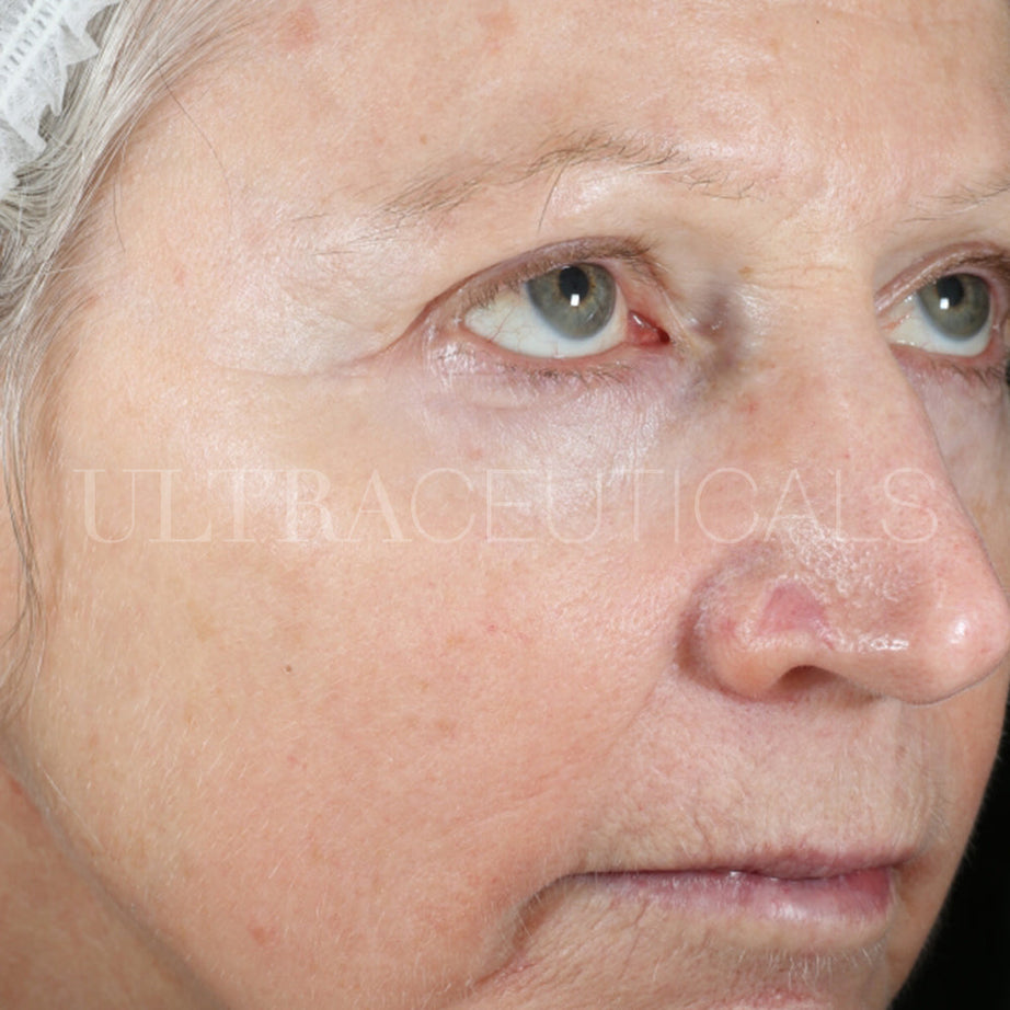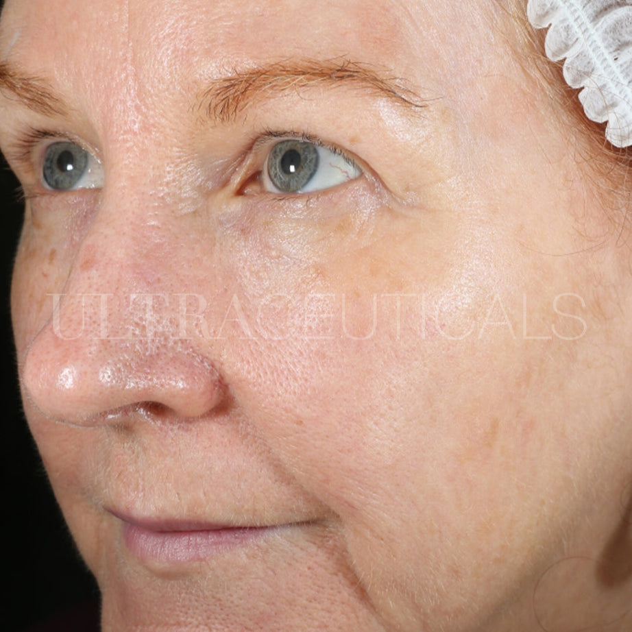 Results: Wrinkles and fine lines around the eyes appear less visible. Cheeks appear plumper and firmer. Notable improvements in skin’s clarity and decrease in brown spots are evident.